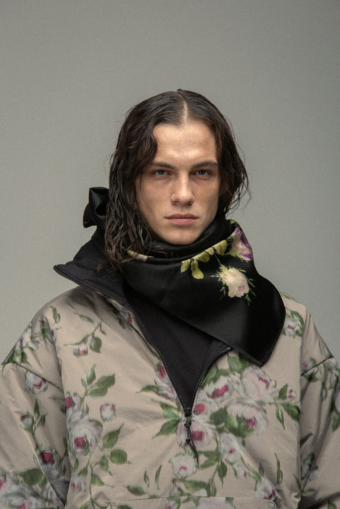 Titled “DARK HORSE”, the AW25 collection is a homage to challenging inhumane systems, protecting people and fighting for your values. Inspired by the Hungarian folklore figure of the ‘betyár’ bandits, the collection takes its thematic and visual cues from the outlawed rebels of the 18th and 19th centuries. Motifs evocative of the tack and trappings of the horse-riding figures run through the collection, with silhouettes and details echoing their legendary attires. The dark colours, burgundies, deep blues and burning yellows mirror the wild, justice-seeking passion of the outlaws, punctuated by reds recalling one of the most revered betyárs, Sándor Rózsa, who shares his name with the flower made of thorns: the rose.