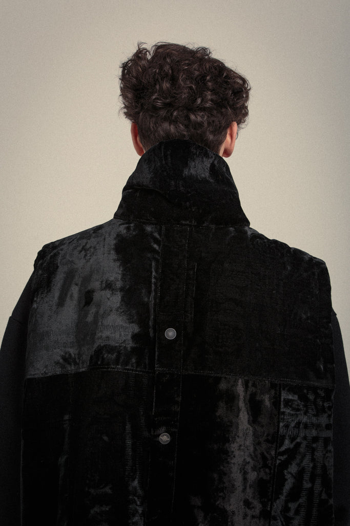 In our REMADE pieces, we continue the legacy of these traditional textiles with contemporary reinterpretations worn by all genders. One velvet coat is usually made from 9 headkerchiefs, which originate from different areas of Hungary, bringing together their stories through space and time.