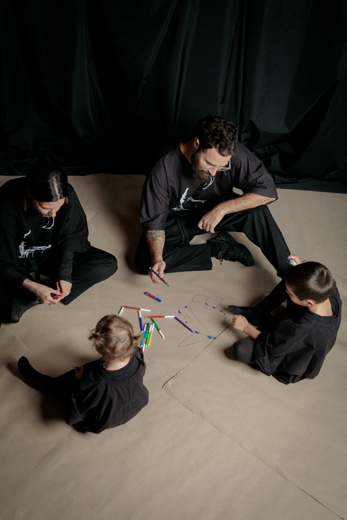 Each Hintalovon x ZSIGMOND product is ethically and locally made in Hungary using 100% organic cotton sourced from certificated European manufacturers. The print was designed by Hungarian graphic artist Aron Dimen, who incorporated the motifs of a crescent moon and the rocking horse referenced in the name of the Foundation. The graphic design is screen–printed onto the garments by hand in an independent workshop in Budapest, using eco-conscious dyes.